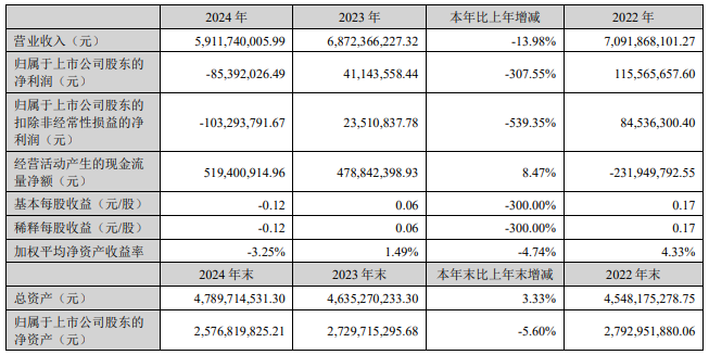 2023年,公司实现营业收入68.72亿元,同比下降3.10%;归属于上市公司股东的净利润4114.36万元,同比下降64.40%;归属于上市公司股东的扣除非经常性损益后的净利润2351.08万元,同比下降72.19%;经营活动产生的现金流量净额4.79亿元,同比增长306.44%。