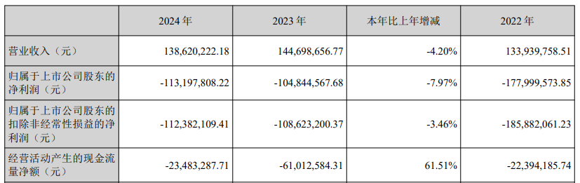 中国经济网北京5月16日讯 霍普股份(301024.SZ)2024年年度报告显示,霍普股份报告期内营业总收入为1.39亿元,同比下降4.20%;归属于上市公司股东的净利润为-1.13亿元,上年同期为-1.05亿元;归属于上市公司股东的扣除非经常性损益的净利润为-1.12亿元,上年同期为-1.09亿元;经营活动产生的现金流量净额为-2348.33万元,上年同期为-6101.26万元。