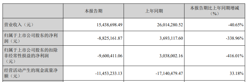 霍普股份2025年第一季度报告显示,霍普股份报告期内营业总收入为1543.87万元,同比下降40.65%;归属于上市公司股东的净利润为-882.52万元,同比下降338.96%;归属于上市公司股东的扣除非经常性损益的净利润为-960.04万元,同比下降416.01%;经营活动产生的现金流量净额为-1145.32万元。
