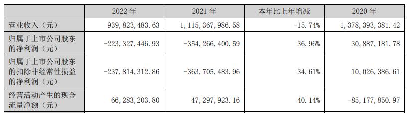 2021年、2022年,宝明科技归属于上市公司股东的净利润分别为-3.54亿元、-2.23亿元;归属于上市公司股东的扣除非经常性损益的净利润为-3.64亿元、-2.38亿元。