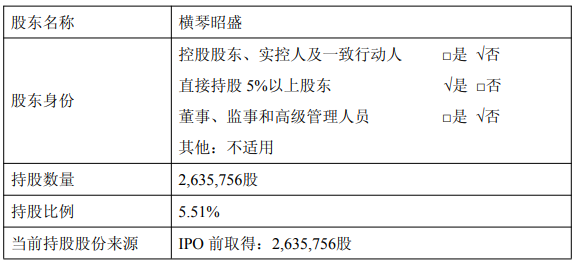 横琴昭盛持有公司股份2,635,756股,占公司总股本的5.51%。上述股份为公司首次公开发行前取得的股份,已于2022年3月16日解除限售并上市流通。