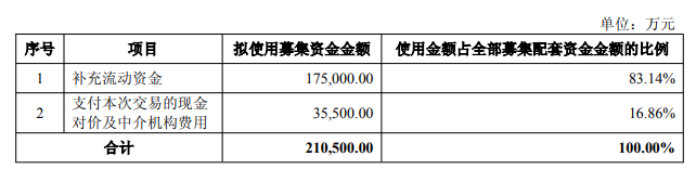 本次募集配套资金总额不超过210,500.00万元,拟用于补充流动资金、支付本次交易的现金对价及中介机构费用。