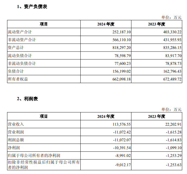 新昇晶投最近两年经审计的合并报表主要财务数据及财务指标如下,2023年度与2024年度,营业收入分别为2.22亿元、11.36亿元,归母净利润分别为-640.15万元、-4610.32万元,扣非净利润分别为-640.33万元、-4621.08万元。