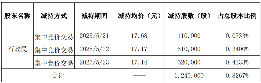 根据公告披露,石政民本次减持套现约2132.83万元。