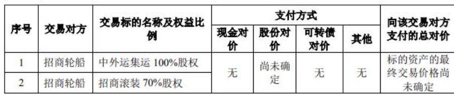 2024年5月28日,招商轮船与安通控股签署《发行股份购买资产框架协议》,安通控股拟通过发行人民币普通股股票并支付现金(如有)的方式收购中外运集运、广州滚装若干股权。《发行股份购买资产框架协议》为本次交易达成的初步意向,不具有法律约束力,本次交易的具体方案及相关条款由相关交易各方另行协商并签署正式文件确定。