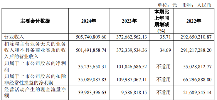 敏芯股份近日发布的2024年年度报告显示,2024年,公司实现营业收入5.06亿元,同比增长35.71%;归属于上市公司股东的净利润-3523.57万元;归属于上市公司股东的扣除非经常性损益的净利润-3508.89万元;经营活动产生的现金流量净额为-3998.34万元。