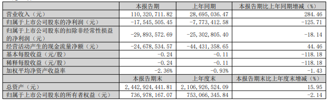 2025年第一季度报告显示,威力传动实现营业收入1.10亿元,同比增长284.46%;归属于上市公司股东的净利润-1754.55万元,上年同期为-777.34万元;归属于上市公司股东的扣除非经常性损益的净利润-2989.36万元,上年同期为-2530.28万元;经营活动产生的现金流量净额-2467.85万元,上年同期为-4443.14万元。