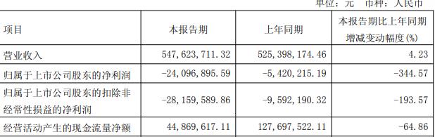 据公司2025年一季报,报告期内,公司实现营业收入5.48亿元,同比增长4.23%;归属于上市公司股东的净利润-2409.69万元,上年同期-542.02万元;扣除非经常性损益后的净利润-2815.96万元,上年同期-959.22万元;经营活动产生的现金流量净额4486.96万元,同比减少64.86%。