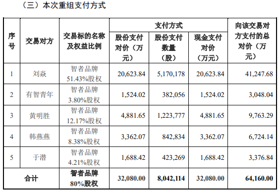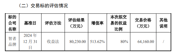 本次交易价格以符合《证券法》规定的卓信大华出具的标的公司评估结果为基础确定,根据卓信大华出具的《智者品牌资产评估报告》,在评估基准日2024年12月31日,本次交易智者品牌80%股权交易作价64,160.00万元。