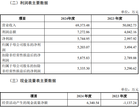 2023年、2024年,智者品牌营业收入分别为50,082.73万元、69,373.48万元,净利润分别为2,997.92万元、5,744.95万元,归属于母公司股东的净利润分别为3,494.47万元、5,203.07万元,扣除非经常性损益后的净利润分别为2,789.88万元、5,875.83万元,归属于母公司股东的扣除非经常性损益后的净利润分别为3,290.62万元、5,335.30万元,经营活动产生的现金流量净额分别为-1,137.24万元、6,340.54万元。