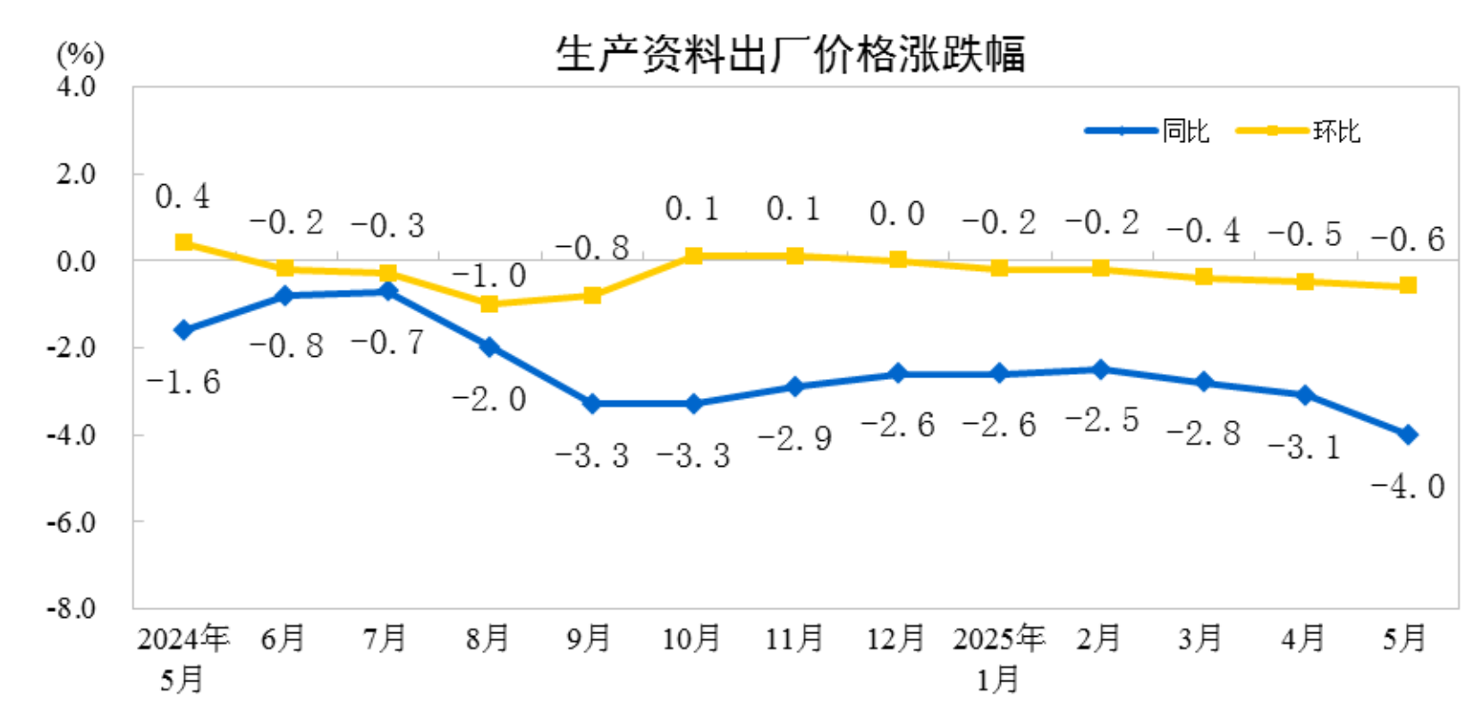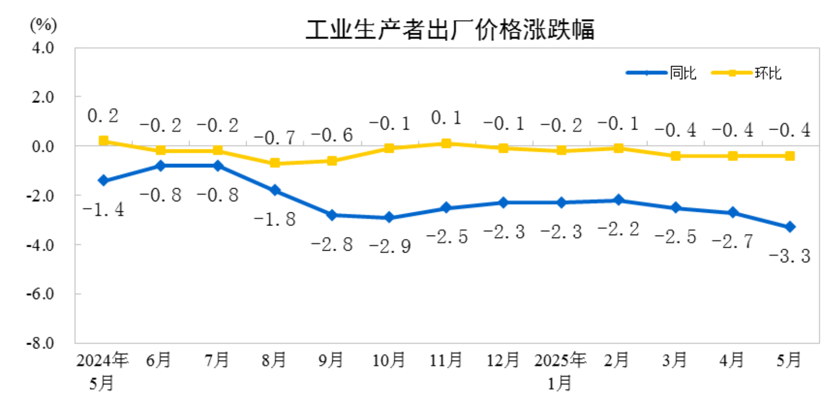 2025年5月份工业生产者出厂价格同比下降3.3%