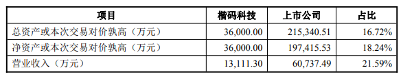 本次交易中,楷码科技100%股权的交易作价为36,000.00万元,其中公司拟使用超募资金18,000.00万元支付本次交易的部分收购价款,剩余部分使用自有或自筹资金支付。
