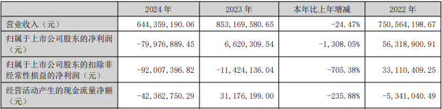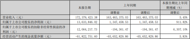 2025年一季度报告显示,今年首季,公司实现营业收入1.72亿元,同比增长5.45%;归属于上市公司股东的净利润1363.38万元,同比增长911.82%;归属于上市公司股东的扣除非经常性损益的净利润1206.42万元,上年同期为-19.44万元;经营活动产生的现金流量净额-6182.28万元,上年同期为-6565.28万元。