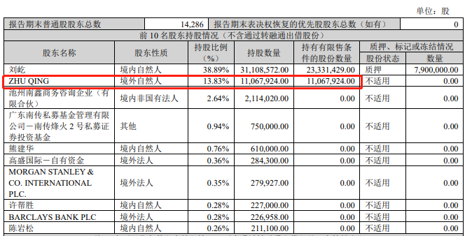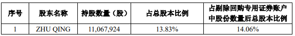 艾可蓝2025年第一季度报告显示,ZHUQING系公司第二大股东。
