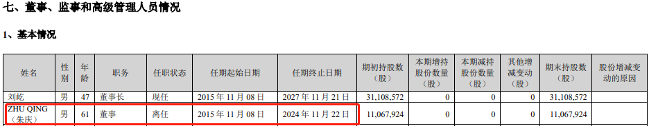 艾可蓝2024年年报显示,ZHUQING(朱庆)系公司董事、子公司总经理,任职状态为离任,任期起始日期为2015年11月8日,任期终止日期为2024年11月22日。