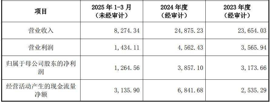 2023年、2024年和2025年1-3月,上海沃典的营业收入分别为23,654.03万元、24,875.23万元和8,274.34万元,归属于母公司股东的净利润分别为3,173.66万元、3,857.10万元和1,264.56万元,经营活动产生的现金流量净额分别为2,535.29万元、6,841.68万元和3,135.90万元。