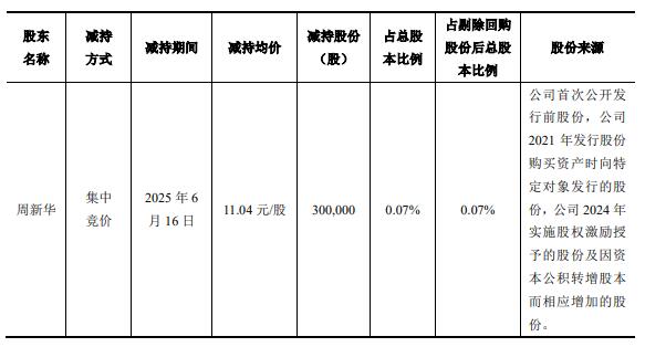 公告显示,周新华6月16日减持300,000股,减持均价11.04元/股。经计算,周新华减持金额331.2万元。