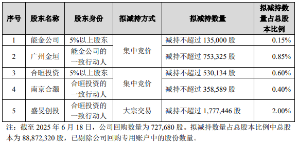 合计持有瑞迈特股份5,234,120股(占公司总股本比例5.84%)的股东能金公司及其一致行动人广州金垣计划在自减持计划公告之日起15个交易日后的3个月内以集中竞价方式或大宗交易方式减持公司股份累计不超过888,325股,占公司总股本比例1%(总股本已剔除公司回购专用账户中的股份数量,下同)。