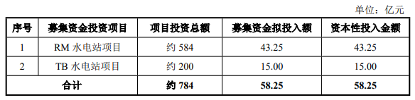 6月10日,华能水电发布的2024年度向特定对象发行A股股票预案(修订稿)显示,公司本次向特定对象发行股票的募集资金总额不超过人民币58.25亿元(含本数),扣除发行费用后的募集资金净额将投入以下项目:RM水电站项目、TB水电站项目。
