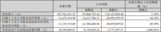 2025年一季度报告显示,今年首季,公司实现营业收入1.08亿元,同比减少7.19%;归属于上市公司股东的净利润-1167.53万元,上年同期为-2093.96万元;归属于上市公司股东的扣除非经常性损益的净利润-1111.97万元,上年同期为-2807.00万元;经营活动产生的现金流量净额2629.59万元,上年同期为-277.73万元。