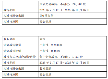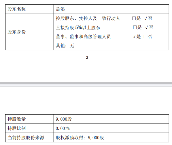 本次减持计划实施前,董事孟浪持有公司9,000股,占总股本0.007%。以上股份来源于公司2021年限制性股票激励计划归属。