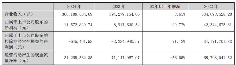 公司近两年扣非均亏损。2023年、2024年,澄天伟业实现归属于上市公司股东的扣除非经常性损益的净利润分别为-223.49万元、-64.55万元。