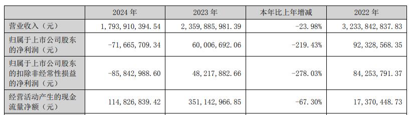 中国经济网北京6月27日讯 盟固利(301487.SZ) 2024年年度报告显示,2024年,公司实现营业收入17.94亿元,同比下降23.98%;归属于上市公司股东的净利润-7166.57万元,上年同期为6000.67万元;归属于上市公司股东的扣除非经常性损益的净利润-8584.30万元,上年同期为4821.79万元;经营活动产生的现金流量净额1.15亿元,同比下降67.30%。