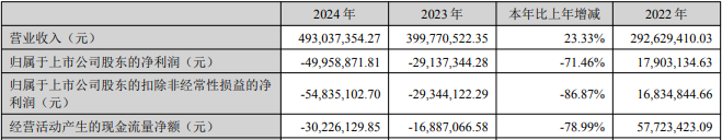 中国经济网北京6月27日讯 国林科技(300786.SZ)2024年年度报告显示,2024年,公司实现营业收入4.93亿元,同比增长23.33%;归属于上市公司股东的净利润-4995.89万元,上年同期为-2913.73万元;归属于上市公司股东的扣除非经常性损益的净利润-5483.51万元,上年同期为-2934.41万元;经营活动产生的现金流量净额-3022.61万元,上年同期为-1688.71万元。