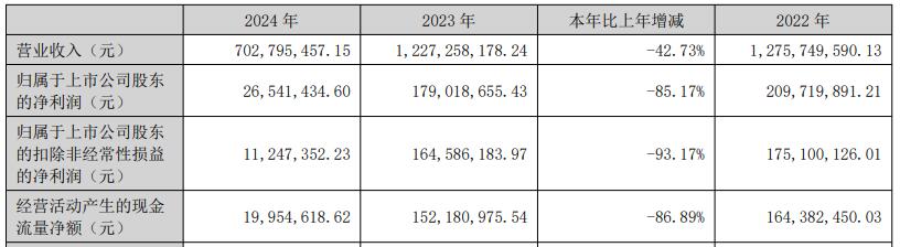 中国经济网北京7月2日讯 亿田智能(300911.SZ) 2024年年度报告显示,2024年,公司实现营业总收入7.03亿元,同比下降42.73%;归属于上市公司股东的净利润2654.14万元,同比下降85.17%;归属于上市公司股东的扣除非经常性损益的净利润1124.74万元,同比下降93.17%;经营活动产生的现金流量净额为1995.46万元,同比下降86.89%。