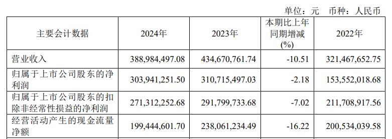 2024年,财富趋势实现营业收入3.89亿元,同比下降10.51%;归属于上市公司股东的净利润3.04亿元,同比下降2.18%;归属于上市公司股东的扣除非经常性损益的净利润2.71亿元,同比下降7.02%;经营活动产生的现金流量净额1.99亿元,同比下降16.22%。
