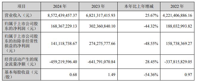 鑫铂股份现金流连负4年。2021年、2022年、2023年、2024年,经营活动产生的现金流量净额分别为-384,632,166.48元、-337,815,829.05元、-641,791,070.84元、-459,219,596.40元。