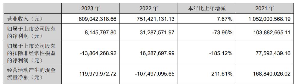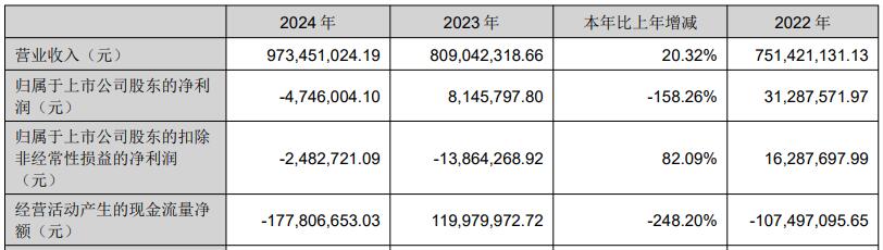 安诺其净利连降5年近2年扣非均亏损。2020年、2021年、2022年、2023年、2024年,安诺其归属于上市公司股东的净利润同比下降分别为27.98%、9.80%、69.88%、73.96%、158.26%。