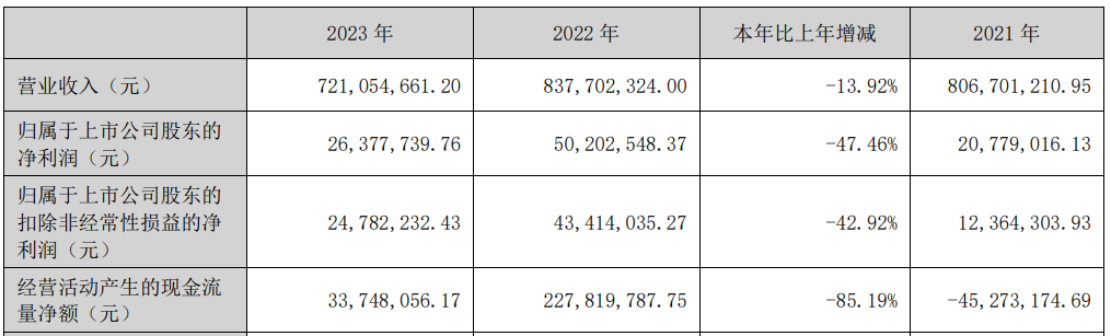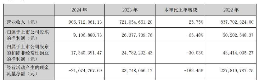 2024年,德艺文创归属于上市公司股东的净利润910.69万元,同比下降65.48%;2023年,德艺文创归属于上市公司股东的净利润2637.77万元,同比下降47.46%。