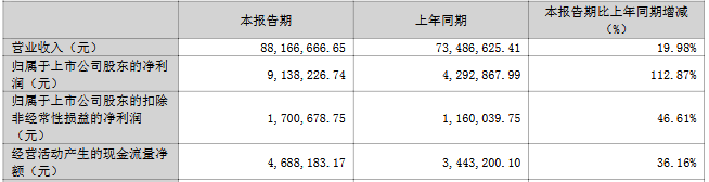 中国经济网北京7月10日讯 新特电气(301120.SZ)日前披露的2025年一季度报告显示,2025年1-3月,公司实现营业收入8,816.67万元,同比增长19.98%;归属于上市公司股东的净利润为913.82万元,同比增长112.87%;归属于上市公司股东的扣除非经常性损益的净利润为170.07万元,同比增长46.61%;经营活动产生的现金流量净额为468.82万元,同比增长36.16%。