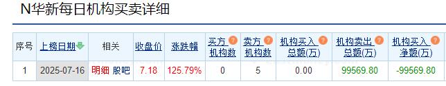 华电新能龙虎榜:机构包揽卖出前5 净卖出共9.96亿元