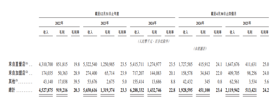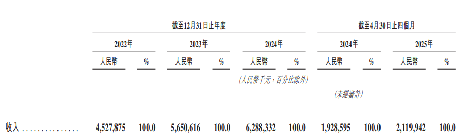 2022年至2024年及2025年前4个月,老乡鸡所用的原材料及耗材占收入的比重分别为37.0%、37.7%、41.3%、39.1%以及42.7%。