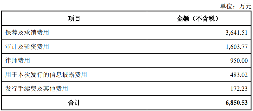 山大电力本次发行费用(不含增值税)为6,850.53万元,其中保荐及承销费用3,641.51万元。