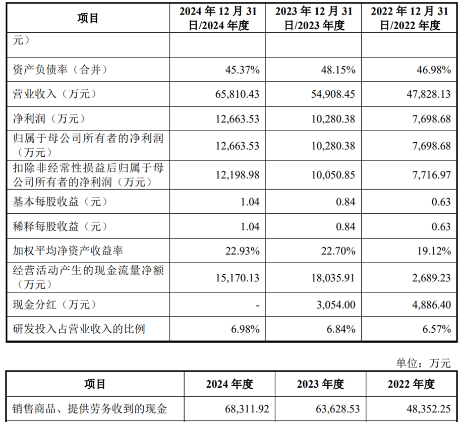2022年至2024年,山大电力的营业收入分别为47,828.13万元、54,908.45万元和65,810.43万元;净利润/归属于母公司所有者的净利润分别为7,698.68万元、10,280.38万元和12,663.53万元;扣除非经常性损益后归属于母公司股东的净利润分别为7,716.97万元、10,050.85万元和12,198.98万元。