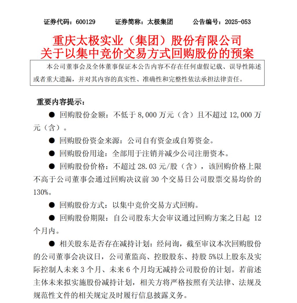 半年净利预降超七成,太极集团1.2亿元回购难挽发展颓势