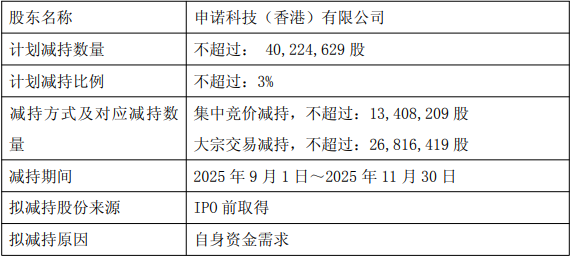 中国经济网北京8月8日讯 恒立液压(601100.SH)昨日晚间发布关于持股5%以上股东减持股份计划公告。公司股东申诺科技(香港)有限公司(以下简称“申诺科技”)因自身资金需求计划于公告披露之日起十五个交易日后的三个月内,即2025年9月1日至2025年11月30日期间,拟通过集中竞价及大宗交易方式合计减持公司股份不超过40,224,629股,即不超过公司总股本的3%。