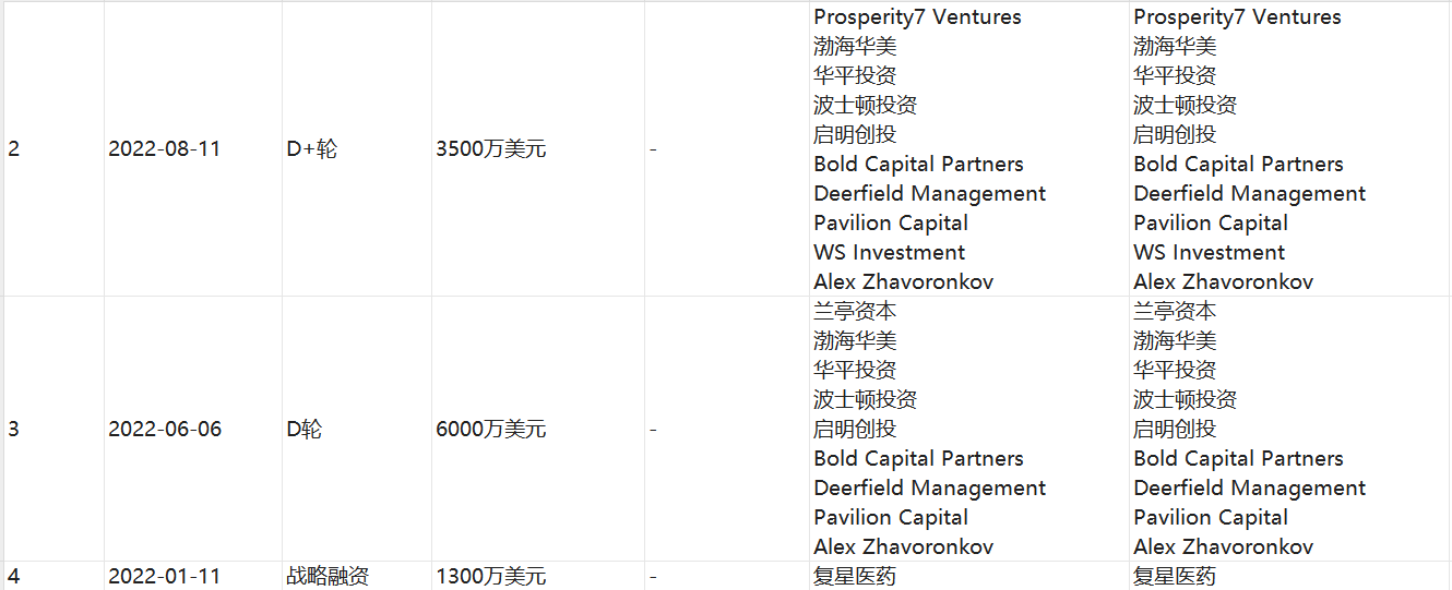 英矽智能2022年6月进行了D轮融资,融资规模为6000万美元,投资方包括兰亭资本、渤海华美、华平投资、波士顿投资、启明创投、Bold Capital Partners、Deerfield Management、Pavilion Capital、Alex Zhavoronkov等机构。同年8月,英矽智能进行D+轮融资,融资规模为3500万美元,投资方包括Prosperity7 Ventures、渤海华美、华平投资、波士顿投资、启明创投、Bold Capital Partners、Deerfield Management、Pavilion Capital、WS Investment、Alex Zhavoronkov等机构。