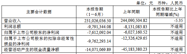 2025年1-6月,公司实现营业收入2.31亿元,同比下降5.35%;归属于上市公司股东的净利润为-761.21万元,上年同期为-602.72万元;归属于上市公司股东的扣除非经常性损益的净利润为-976.23万元,上年同期为-1,232.64万元;经营活动产生的现金流量净额为-1,407.11万元,上年同期为-4,518.34万元。