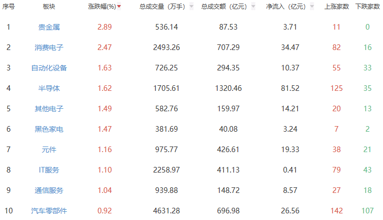 午评:沪指半日涨0.07% 贵金属板块涨幅居前