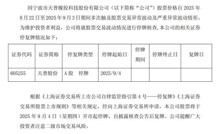9月17日,天普股份披露核查结果并宣布9月18日复牌,同时透露四名内幕信息知情人在2025年2月14日至8月14日期间存在买卖公司股票行为,相关收益已全部上缴至上市公司。