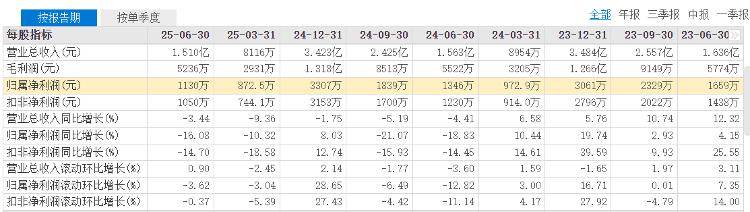 而公司半年报显示,2025年上半年营收1.51亿元(同比-3.44%),净利润1129.8万元(同比-16.08%),扣非净利润更是同比下滑14.7%。