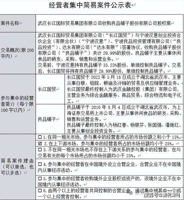 据国家市场监督管理总局官网披露,长江国贸收购良品铺子股权案已正式进入经营者集中反垄断审查阶段。尽管该行政审查程序与广州轻工的股权纠纷诉讼分属不同法律维度,但司法层面冻结宁波汉意所持19.89%股份的保全措施,已对交易架构产生实质性影响。