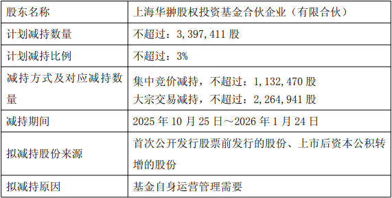 按9月24日收盘价12.33元计算,华翀基金减持金额不超过4189.01万元。
