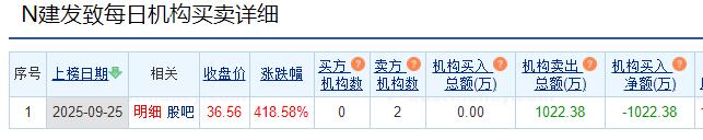 中国经济网北京9月25日讯 建发致新(301584)今日收报36.56元,涨幅418.58%。