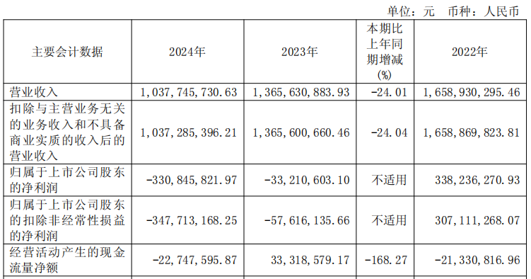 2023年、2024年,公司实现归属于上市公司股东的净利润分别为-3321.06万元、-3.31亿元。