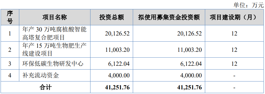 农大科技拟在北交所募集资金41,251.76万元,用于年产30万吨腐植酸智能高塔复合肥项目、年产15万吨生物肥生产线建设项目、环保低碳生物研发中心、补充流动资金。